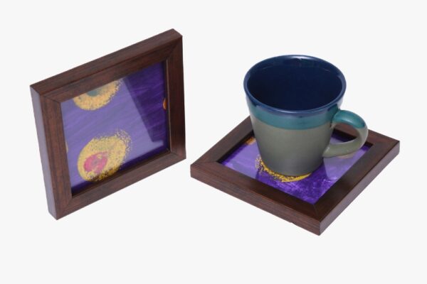 With a vibrant design, this coaster set adds a fun pop of colour to wherever it resides. Its heat-resistant feature provides complete utility, while the colour adds to the overall usefulness. .it can be Art work coaster, Warli design coaster, mandala coaster, kolam design and handwoven fabric coaster.
