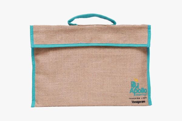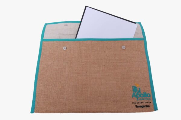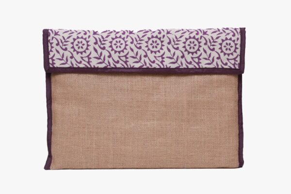 Jute file folder with elegant block print detailing, perfect for organizing important documents – A4 size
