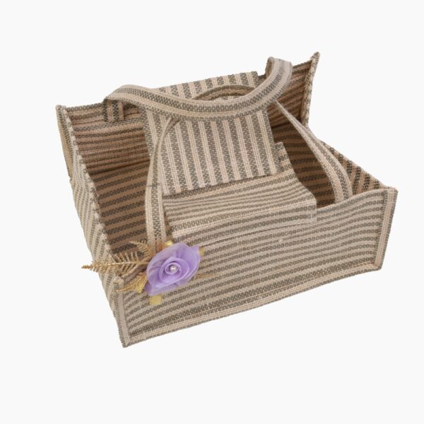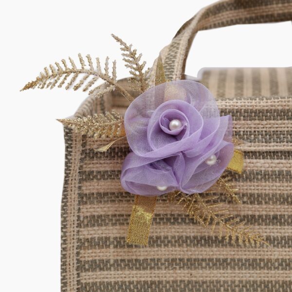 Classic and prim box type jute bag with elegant floral deco.