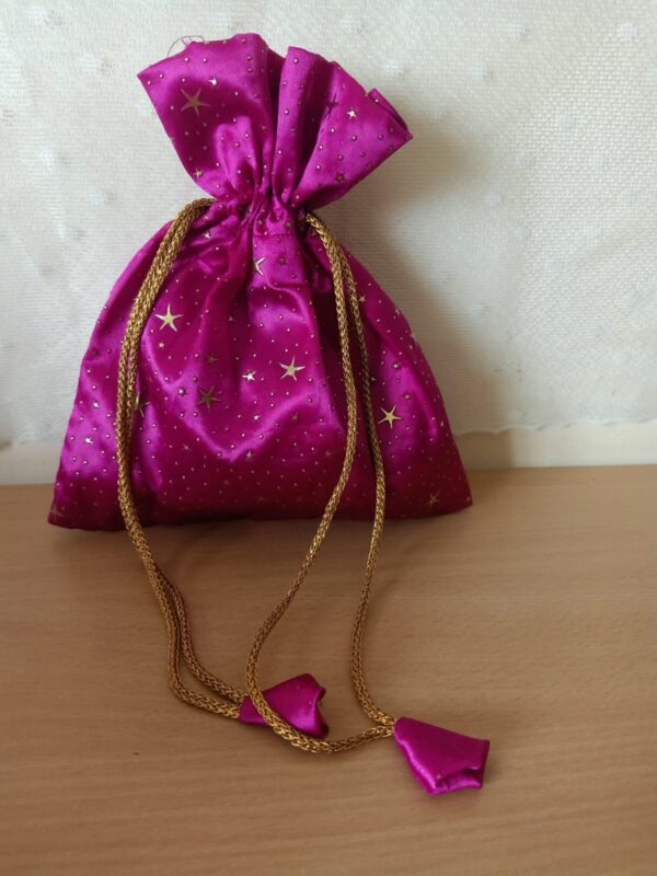 Add a touch of luxury to your festive look with our stunning Glittering Glam Potli! Made from rich satin, this petite pouch is adorned with intricate star work that shimmers and shines, perfect for making a statement.