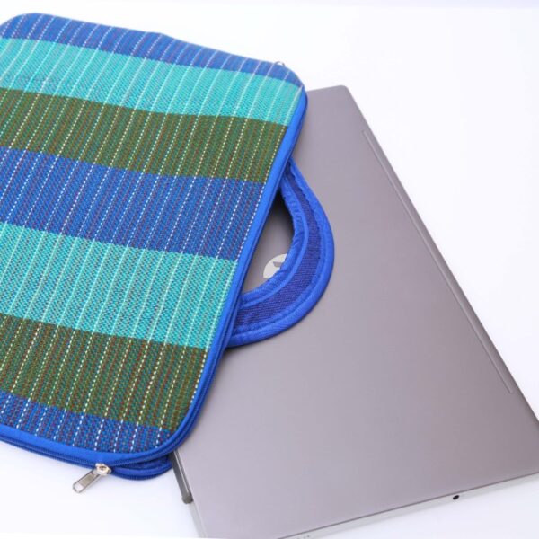 Laptop sleeve with a hand-woven exterior. Slim and lightweight, can be used individually or carried in a backpack/briefcase. Made of soft and environment friendly materials to protect your laptop.