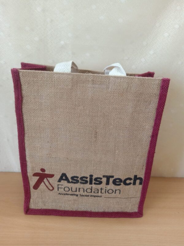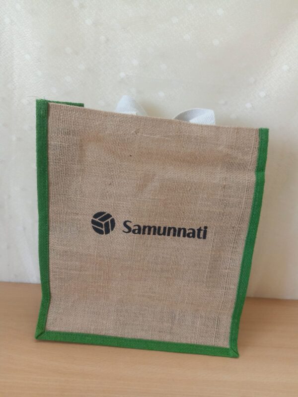 Personalised image/ logo screen printed on high quali­ty jute fabric