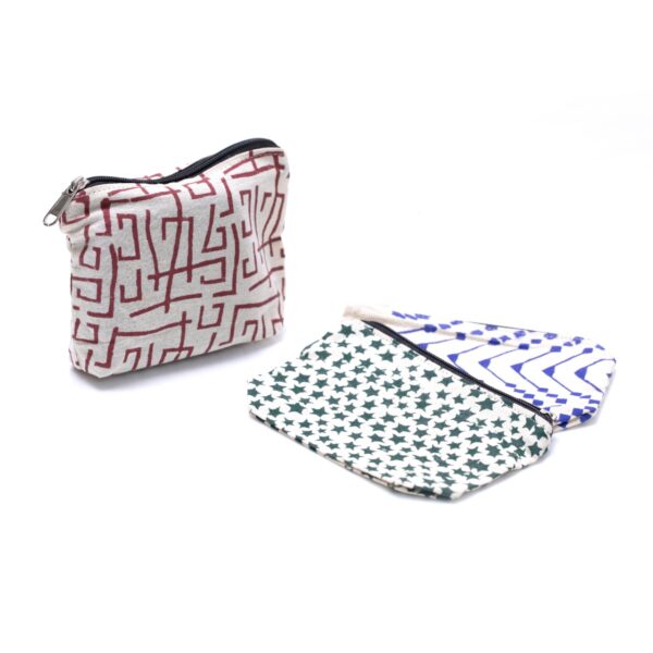 Cute and handy small sized pouches to store keys, coins, portable chargers, memory banks etc, with block printed detailing.
