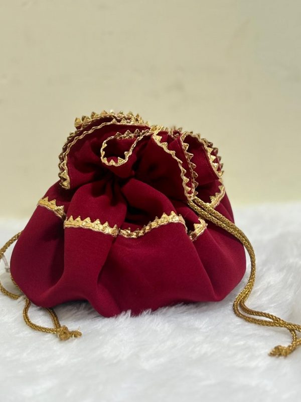 This delicate and charming potli bag features sheer organza fabric, creating a soft and romantic appearance