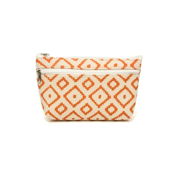 Classy multipurpose canvas pouch with handmade patchwork and block-printed detailing